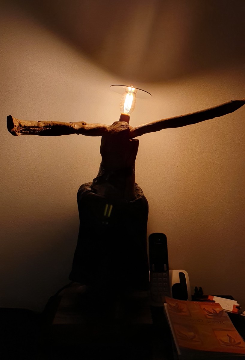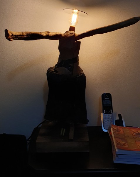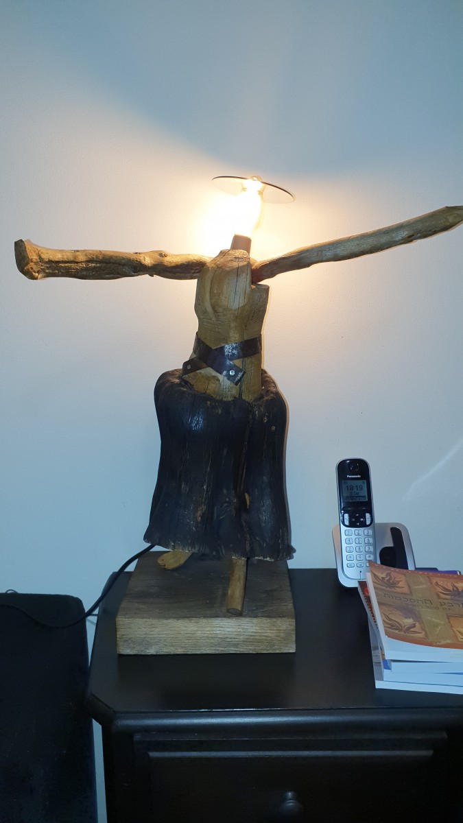 מנורת שידה/קריאה יצירת אומן. עשויה שורשי עץ מלא. בדמות רקדנית. יחידה במינה.