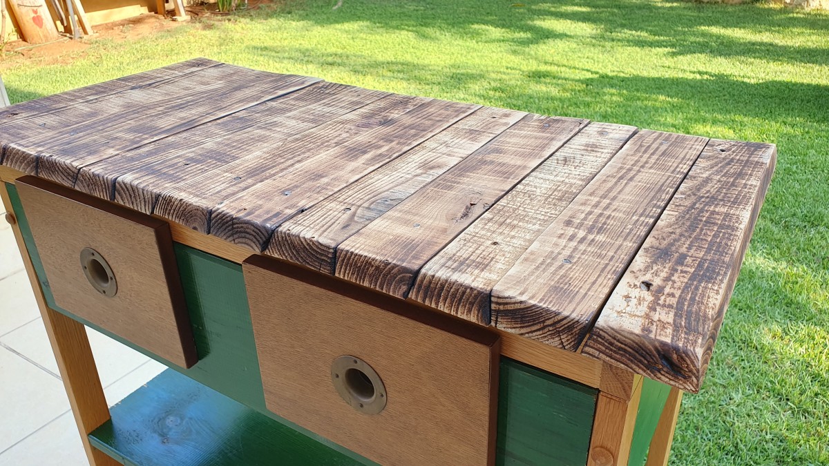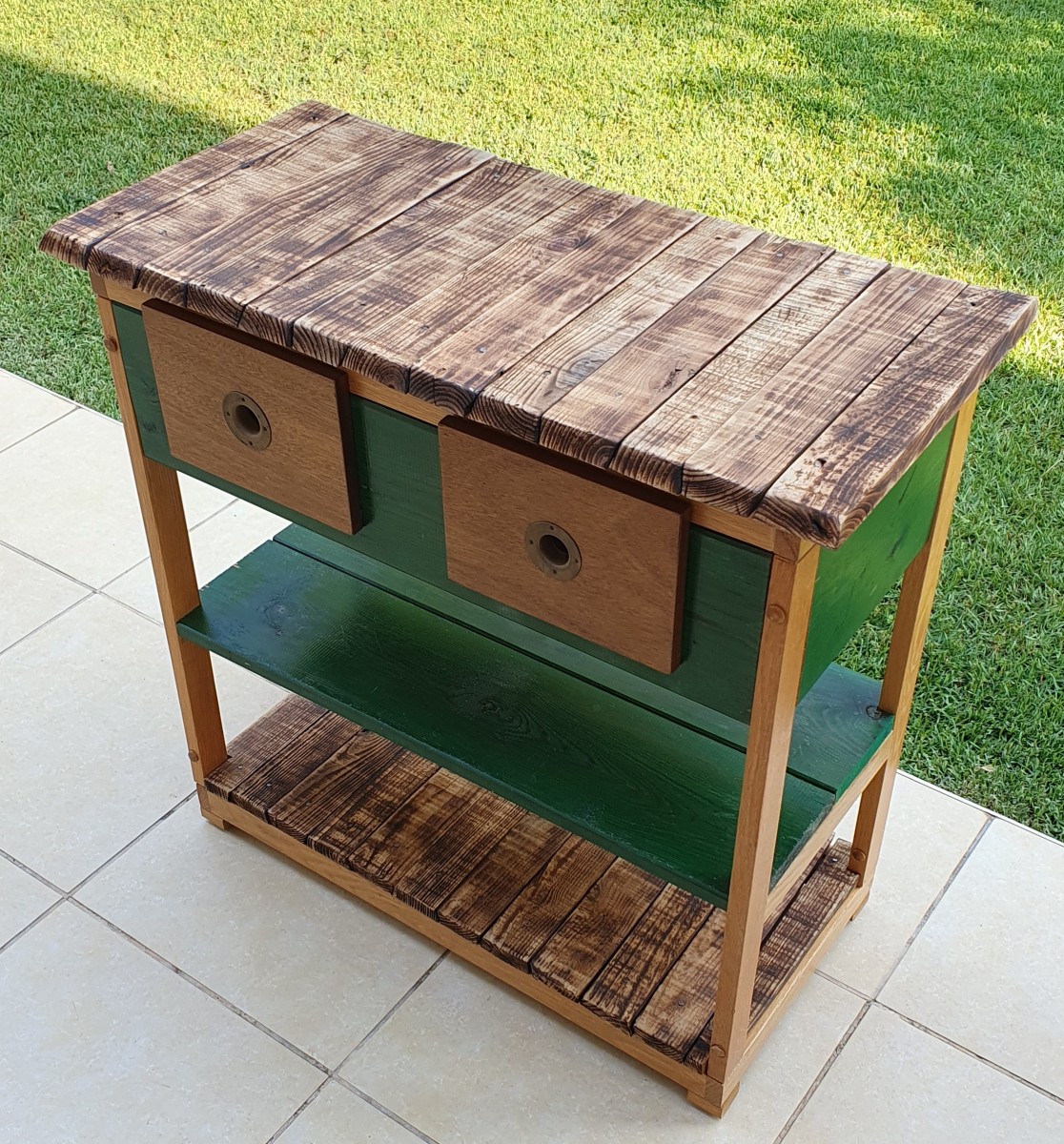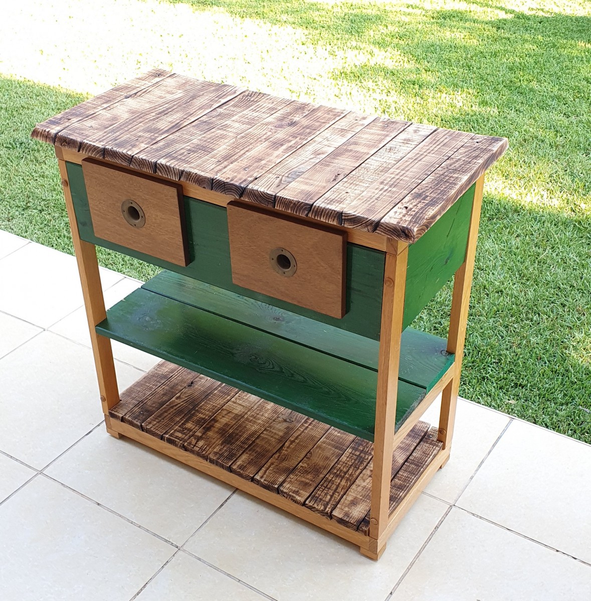עם שתי מגרות ושני מדפים. גובה: כ-90 ס"מ רוחב: כ-90 ס"מ עומק: כ-40 ס"מ