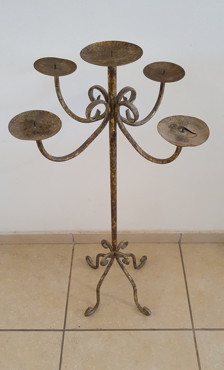 מעמדים מעוצב ל-5 נרות מברזל. עם סימני זמן שמוסיפים. גובה 100 ס"מ