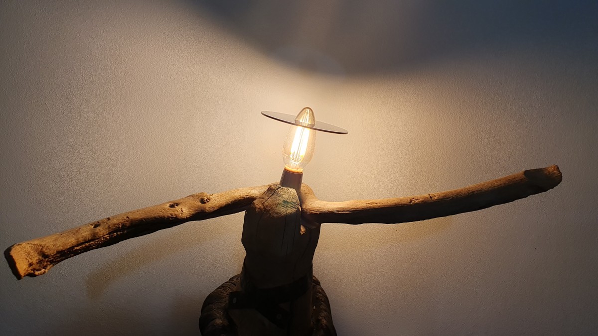 מנורת שידה/קריאה יצירת אומן. עשויה שורשי עץ מלא. בדמות רקדנית. יחידה במינה.