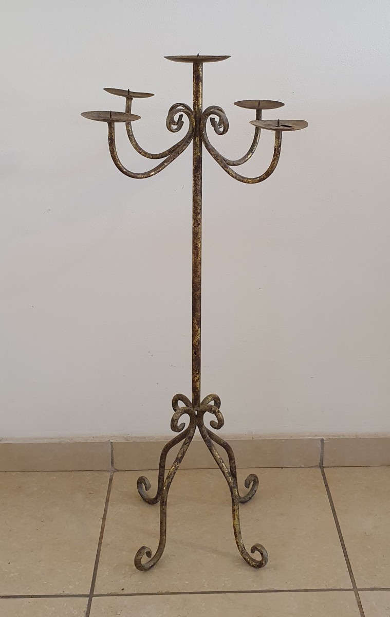 מעמדים מעוצב ל-5 נרות מברזל. עם סימני זמן שמוסיפים. גובה 100 ס"מ